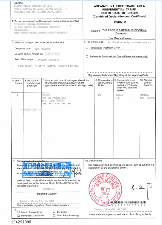 Asean- China Free Trade Area Preferential of Origin